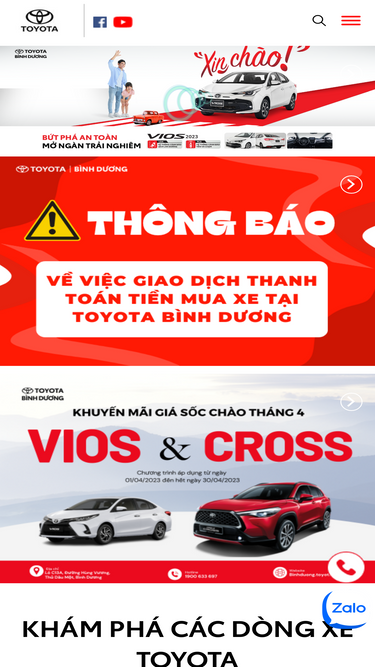 55%Toyota Bình Dương là đại lý Toyota chính thức, cung cấp sản phẩm và dịch vụ xe mới, mua-bán xe đã qua sử dụng, bảo dưỡng, sửa chữa, bảo hành đối với các dòng xe Raize, Corolla Cross, Yaris, Vios, Corolla Altis, Camry, Innova, Veloz Cross, Avanza Premio, Fortuner. Hilux,...