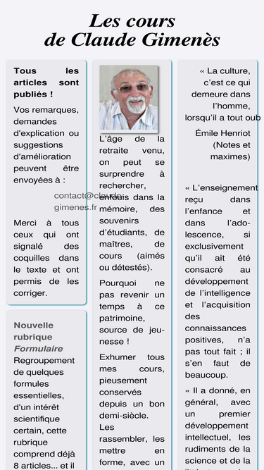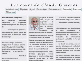 99%les cours de claude gimenès : mathématiques appliquées, physique (ondes, thermodynamique, optique, relativité), théorie du signal, électronique et environnement (développement durable). cours et exercices.