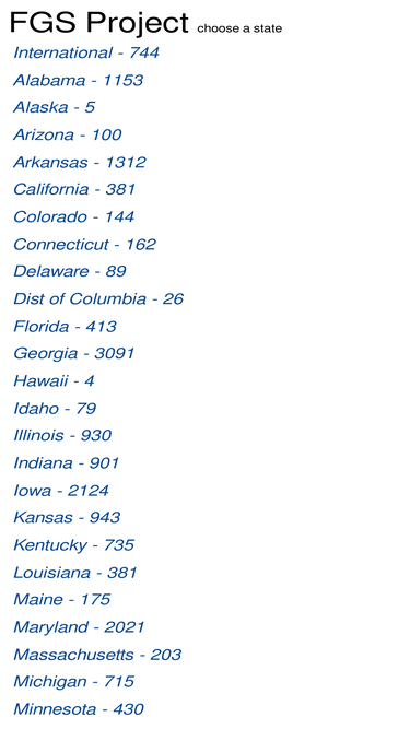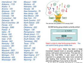 98%family group sheets submitted by researchers for families of a specific surname who lived at some point in the united states of america.