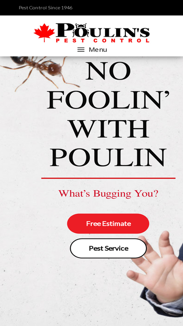 38%What's Bugging You? Contact us through our online contact form or call Poulin's Pest Control toll-free at 1-888-768-5467.