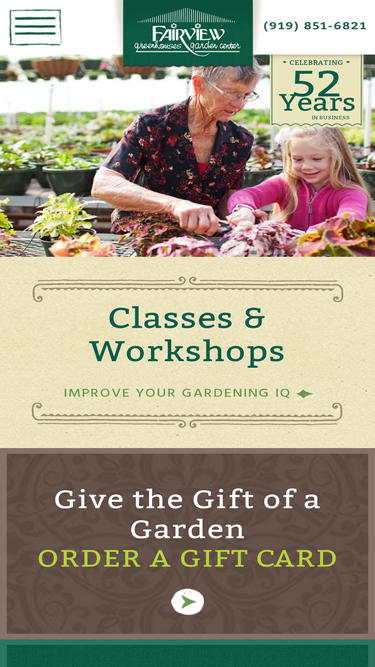 50%Fairview Garden Center boasts two acres of greenhouse space used for growing annual flowers, houseplants, herbs, vegetables and seasonal favorites, such as poinsettias. In addition, we have several acres solely devoted to trees and shrubs, perennials, ground covers and more. Our Raleigh garden center was built in 2004 and features everything you need for a successful garden, including gardening tools and supplies, bird feeders and products, pottery and statuary and more. To top it all off, Fairview Garden Center has a gift shop that’s ideal for finding the perfect gifts, home decor and Christmas decorations.