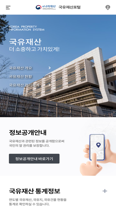 76%「e나라재산 국유재산 포털」은 국유재산 통계정보, 국유재산 일반현황, 지도서비스 등을 모든 국민에게 제공함으로써 국민의 알 권리 보장과 국민과의 양방향 소통을 위한 서비스를 실시하고 있습니다.