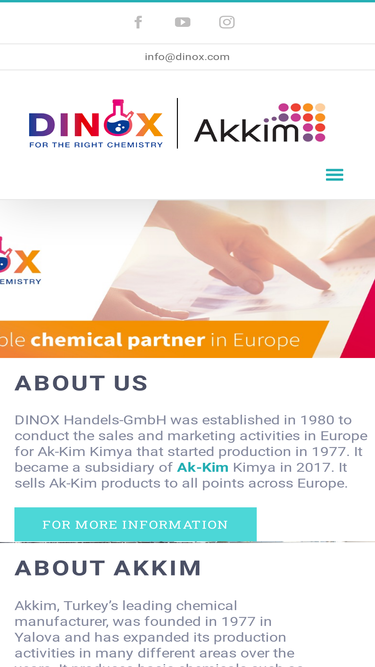 87%loading... please visit www.akkim.com.tr/en about us dinox handels-gmbh was established in 1980 to conduct the sales and marketing activities in europe for ak-kim kimya that started production in 1977. it became a subsidiary of ak-kim kimya in 2017. it sells ak-kim products to all points across europe. for more informationabout akkim akkim, turkey's leading chemical