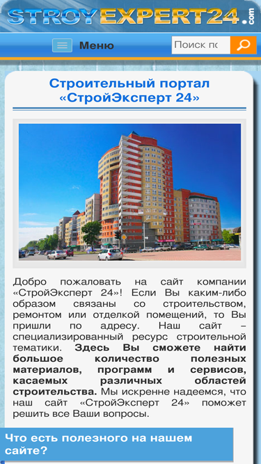 95%сайт «стройэксперт 24» - специализированный ресурс строительной тематики. здесь вы найдете большое количество полезной информации, различных программ и сервисов, посвященных стройке, ремонту и отделке.