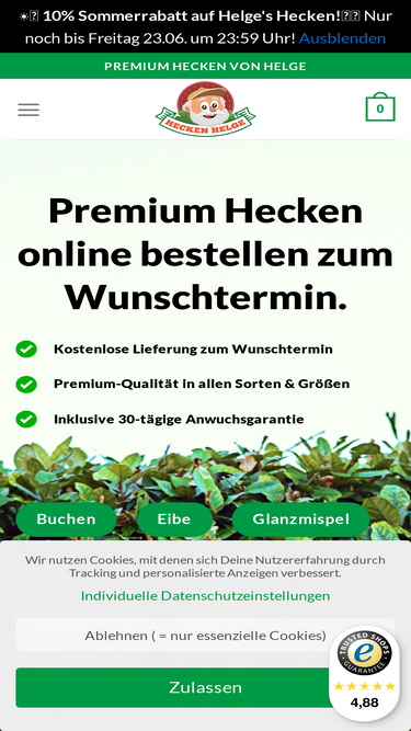 95%Hecken bestellen war nie einfacher. Deutschlands beliebteste Heckensorten ✓ Zum Wunschtermin ✓ Auf Rechnung ✓ Jetzt Preise ermitteln →