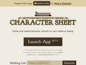 83%an online character sheet for the pathfinder roleplaying game, with cloud storage.