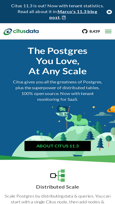100%News articles, product announcements, & notable blog posts about Citus. The Citus database gives you Postgres at any scale, from a single node to a large distributed cluster. As of Citus 11, Citus is now 100% open source—and is also available as a managed service with Azure Cosmos DB for PostgreSQL.