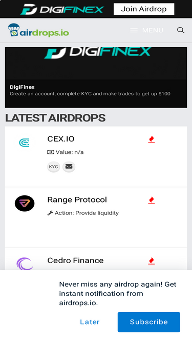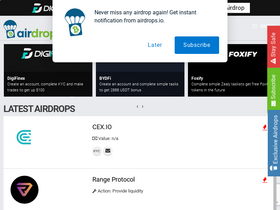 60%lll➤ You wanna receive airdrop alerts about the hottest airdrops out there? Try airdrops.io! We reasearch the latest cryptocurrency airdrops and notify you as soon as new airdrops arrive. Follow us on Telegram, Twitter or Facebook to never miss the any airdrop again! Airdrop Alert ✅ Legit airdrops ✅ 100% free!