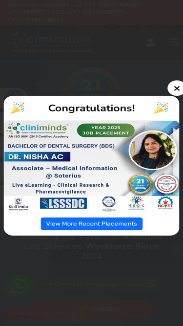 85%cliniminds institute offers life sciences sector skill development council accredited clinical research courses, pharmacovigilance courses, sas course, data management courses, regulatory affairs courses, medical writing courses & medical devices courses with 100% placement support