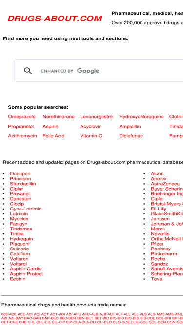 Medications and prescription drug information for consumers and medical health professionals. Online database of the most popular drugs and their side effects, interactions, and use.