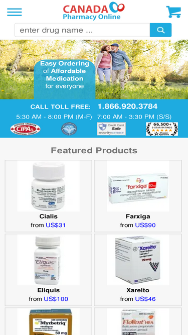 92%The only Canadian online pharmacy with 475,000+ reviews, stellar TrustScore, four million+ Rx filled and CIPA & IPABC certified. Shipping to USA.