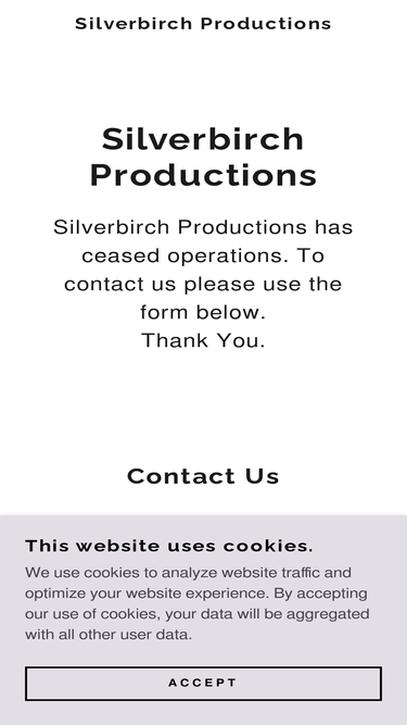 56%Silverbirch Productions has ceased operations. To contact us please use the form below. Thank You.