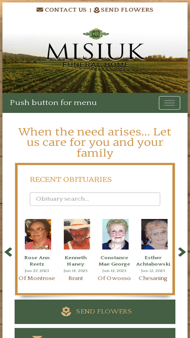 95%Contact Us - Misiuk Funeral Home offers a variety of funeral services, from traditional funerals to competitively priced cremations, serving Chesaning, MI and the surrounding communities. We also offer funeral pre-planning and carry a wide selection of caskets, vaults, urns and burial containers.
