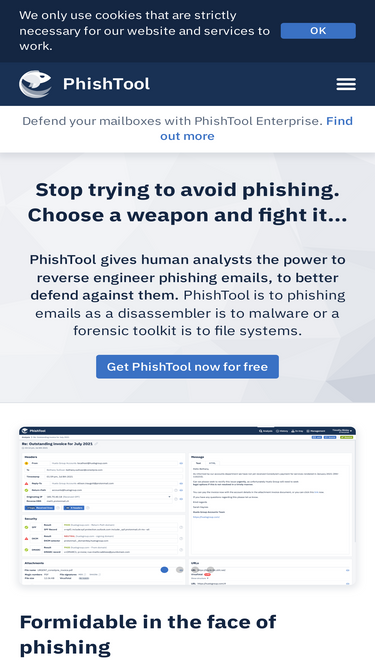 phishtool gives human analysts the power to reverse engineer phishing emails, to better defend against them. try phishtool community for free.