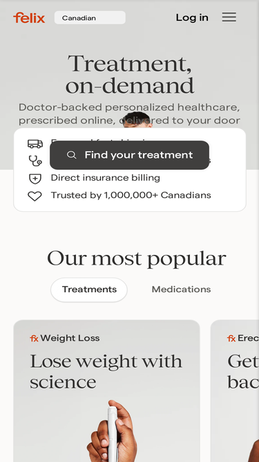 82%Felix offers on-demand treatment for common health issues such as erectile dysfunction, hair loss, HIV prevention, acne, birth control, and more.