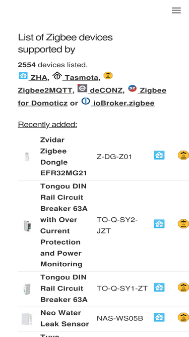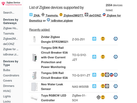 76%Database of Zigbee devices compatible with ZHA, Tasmota, Zigbee2MQTT, deCONZ, ZiGate and ioBroker