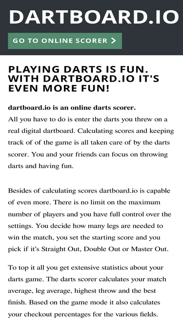 71%free darts scorer app. multiple players, x01, double out, master out, straight out and advanced statistics.