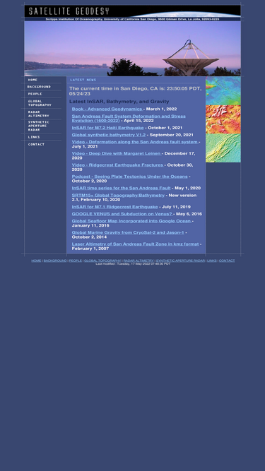 78%the satellite geodesy research group at scripps institution of oceanography, university of california san diego studies data collected by radar altimetry and synthetic aperture radar and applies it to geophysical problems