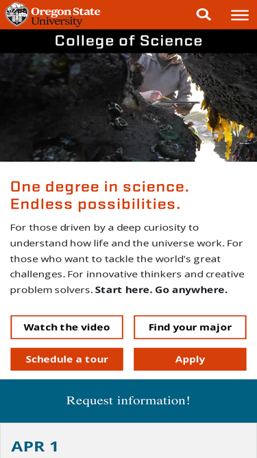 93%We integrate hands-on experiences into our science degrees to prepare graduates to tackle today’s toughest problems.