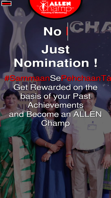 91%allen champ is india’s unique honoring & mentoring program by allen career institute for rewarding the academically talented students who are recognized across the globe. no fee, no examination; just nomination!!. get rewards based on your past achievements.