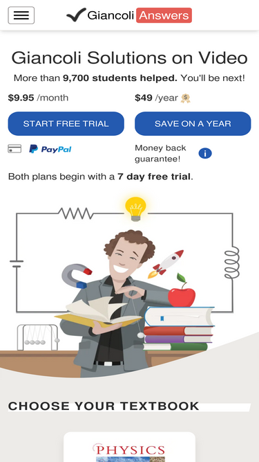 89%giancoli 7th and 6th edition solutions on video for physics: principals with applications. step by step solution manual created by an expert physics teacher.