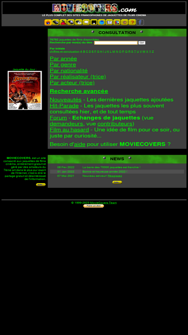 85%Site participatif de critiques de films classiques ou récents, communauté où chacun complète les fiches de films et de stars, échange des jaquettes et des wallpapers.