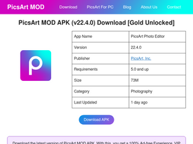 87%Download PicsArt MOD APK Premium Unlocked. With PicsArt Gold you get 100% Ad-free Experience, VIP Access, and No Watermarks.