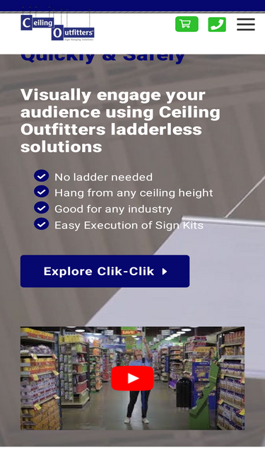 Answers to your frequently asked questions about Clik-Clik, UrbanTrapeze, LoopLine, and other products we provide that help you hang signs from the ceiling.