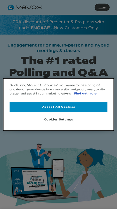 98%Contact the Vevox via live chat, phone, email or a web form and we will answer any queries you may have.