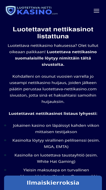 Luotettava nettikasino hakusessa? Tästä listasta löydät kaikki luotettavat suomalaiset nettikasinot, jotka olen todennut turvallisiksi.