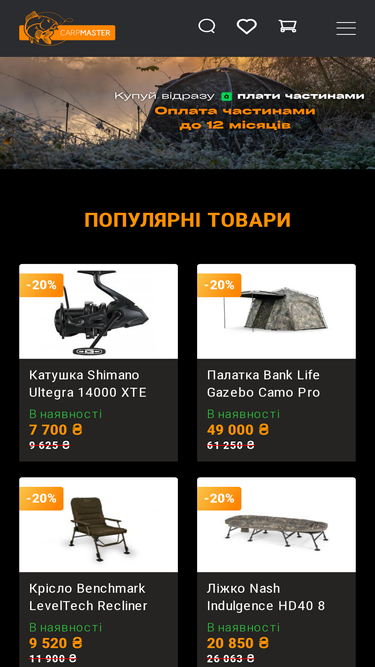 86%Наш интернет магазин CarpMaster реализует широчайший ассортимент товара для ловли карпа. Основное — это оборудование и снасти, прикормки и насадки.