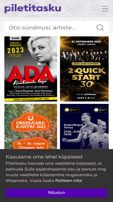 90%uusim ürituste, kontsertide, festivalide, teatri- ja ooperietenduste piletite levitaja eestis!