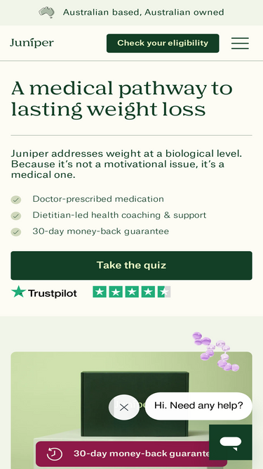 100%The Juniper Weight Reset Program is a holistic weight loss program with tailored treatment plans for sustainable weight loss. The program includes medically backed treatments, unlimited follow-up consultations with your Juniper practitioner, regular check-ins from and unlimited access to our medical support team of registered nurses and pharmacists, health coaching, 1:1 health tracking and more.