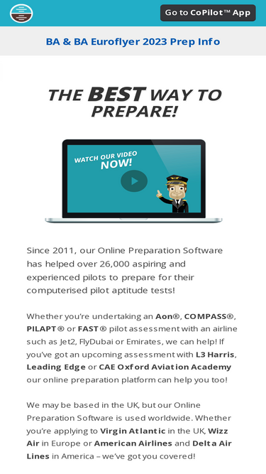 92%Get ready for your upcoming pilot assessment. Practice aptitude tests and interview designed for airlines. Best online pilot assessment preparation.
