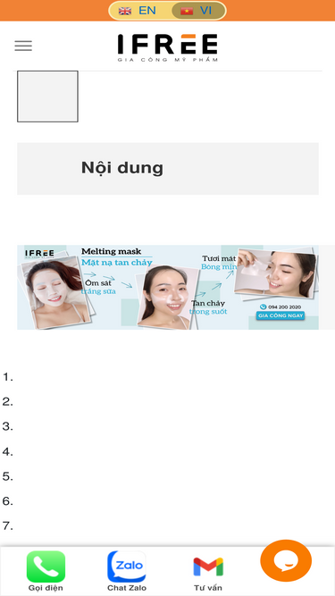 IFREE là đơn vị sản xuất gia công mỹ phẩm hàng đầu Việt Nam, với quy trình sản xuất đạt chuẩn cGMP, công thức độc quyền, nguyên liệu thiên nhiên. Đảm bảo uy tín, chất lượng