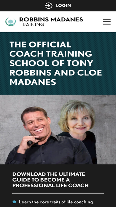 73%Robbins-Madanes Training offers a globally recognized life coach certification program founded by Tony Robbins and Cloe Madanes. This online course provides professional training in strategic intervention, personal development, leadership, and relationship coaching. Students gain powerful tools to help clients create lasting transformation in their lives. Trusted and top-rated worldwide, Robbins-Madanes Training prepares you to become a certified, confident, and effective life coach.