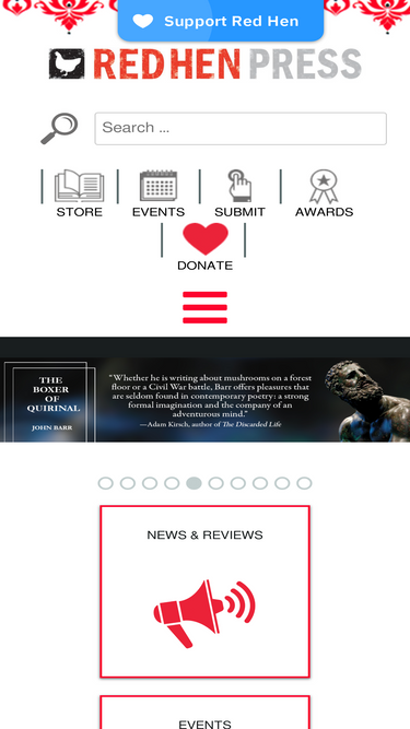 62%When you donate, your contribution ensures the longevity of the Red Hen Press and allows us to continue publishing innovative, award-winning literature. Red Hen is a 501(c)(3) nonprofit. All donations are 100% tax-deductible. For more information, please contact our Development Associate at development@redhen.org or (626) 406-1205. Make a one-time donation Support a Specific Red Hen