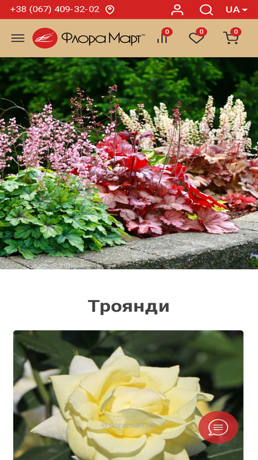 94%флора март - садовый центр, интернет-магазин, цены, киев, украина, купить растения открытого грунта: хвойные деревья, кустарники, лиственные деревья, кустарники, плодовые деревья, кустарники, лианы, растения для водоемов, почвопокровные растения: однолетние, многолетние, горшечные растения, комнатные, цветущие, декоративно лиственные, цитрусовые, кактусы и суккуленты, тропические растения, сопутствующие товары, грунты, удобрения, горшки, семена, средства защиты, декоративные аксессуары, садовый инвентарь, климатические зоны украины, помощь садоводу, доставка по киеву и украине