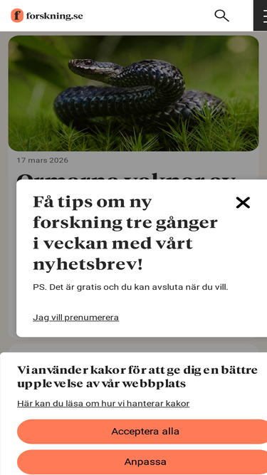 82%Fattar du forskning? Ju mer koll du har på hur forskning går till, desto enklare blir det att bedöma saker du hör eller läser om. Det hjälper dig att avgöra vad som är viktigt på riktigt. Vi har gjort en guide för dig som vill veta hur forskning fungerar. Journalist? Här hittar du fd Expertsvar […]