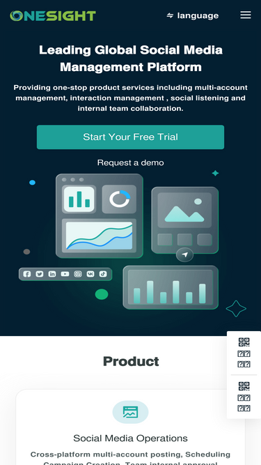 100%OneSight是海外社交媒体(Facebook、X、Instagram、LinkedIn、YouTube、Tiktok)数据管理营销平台,助力中国企业海外高效引流、持续获客,精细化运营。