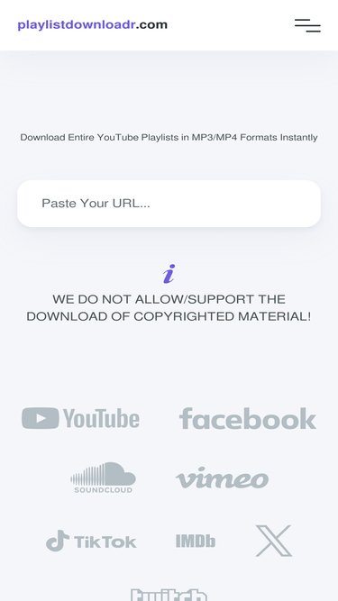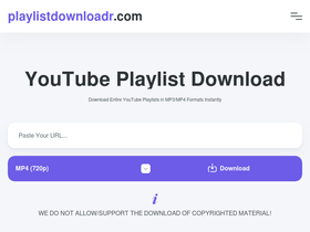 Unduh daftar putar YouTube lengkap secara instan dalam kualitas HD. Konversi seluruh daftar putar ke format MP3 320kbps atau MP4 4K. 100% gratis tanpa diperlukan pendaftaran.