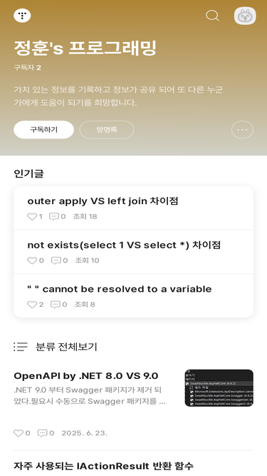 가치 있는 정보를 기록하고 정보가 공유 되어 또 다른 누군가에게 도움이 되기를 희망합니다.