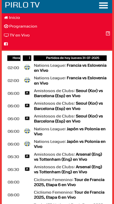 100%PIRLOTV, Es un sitio donde encontraras todos los eventos deportivos gratis por internet ingresa ahora a ROJA DIRECTA hd para ver el partido de futbol.