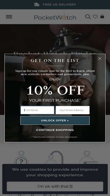 MovementHand Wound Mechanical 17 JewelCase StyleDouble Half Hunter Pocket WatchCase MaterialPolished ChromeDial ColourWhite Case Diameter1.77 Inches(45mm)Case Depth0.47 Inches(12mm)Dial StyleSkeletonCase BackGlass Back CaseNumeral TypeRoman Winder Position12 O'clockFeaturesOuter Dial With Roman Indexes & Showing Passing Of The MinutesChain TypeMatching Chain Of Your Choice The WindsorA stylish mechanical half double hunter by the Greenwich Pocket Watch Company. This watch has a polished chrome case which opens on the front and back. The front case has Roman numerals around a viewing window to read the time without opening the watch. When both sides are open the internal mechanisms can be seen in the middle of the watch face and on the back. The watch face is white with black Roman numerals. Includes full manufacturers guarantee. Comes complete in presentation box.