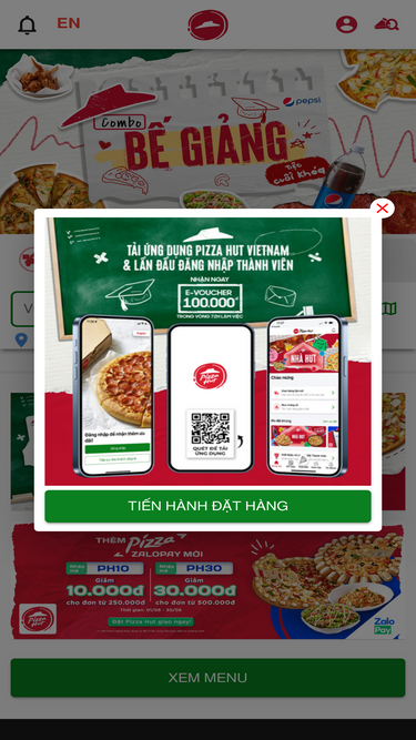 87%Tận hưởng hương vị đặc trưng của Pizza Hut với ưu đãi đến 40% cho Combo tiệc tại gia, phục vụ 2-6 người. Pizza nóng hổi, giòn ngon kèm theo đồ ăn khai vị đa dạng, hứa hẹn một bữa tiệc tuyệt vời! Đặt hàng ngay để trải nghiệm!
