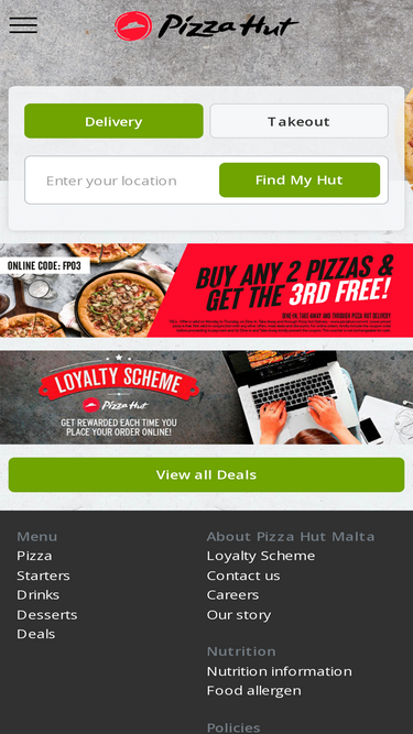 95%At Pizza Hut Cyprus, we deliver the flavor. Treat yourself to the best-tasting Pizzas, Wingstreet, Hut Burger, Pasta, Salads, Desserts and more.