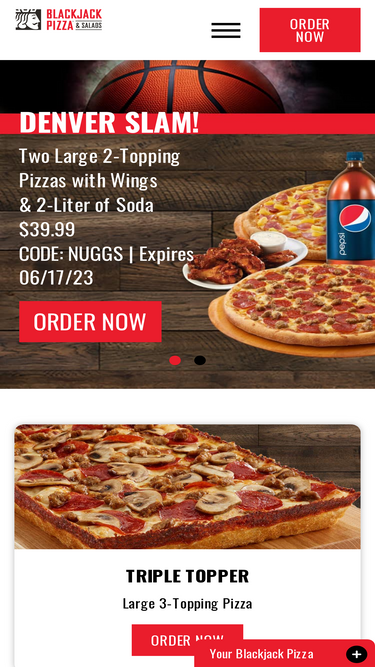 77%Handcrafted, crunchy crust, smothered in cheese. Order Blackjack Pizza online for delivery or pick-up. See our coupons page for current deals and discounts.