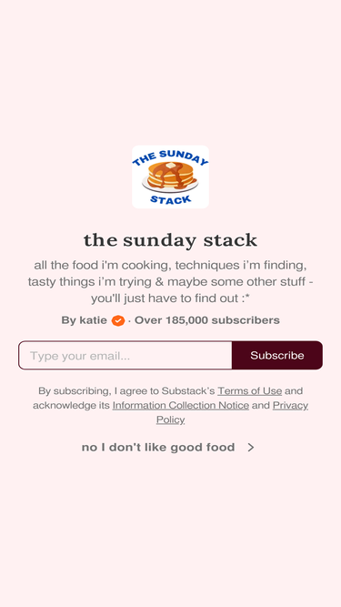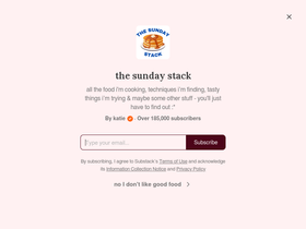 74%all the food i'm cooking, techniques i’m finding, tasty things i’m trying & maybe some other stuff - you'll just have to find out :*. Click to read the sunday stack, by katie, a Substack publication with hundreds of thousands of subscribers.