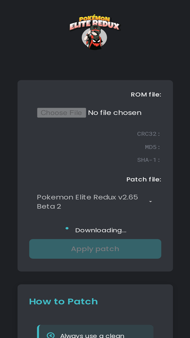 87%an online web-based rom patcher. supported formats: ips, bps, ups, aps, rup, ppf and xdelta.