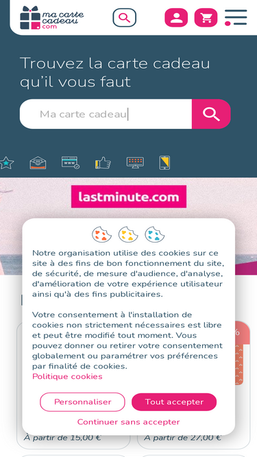 100%Ma Carte Cadeau, c'est l’idée cadeau idéale. Avec plus de 233 enseignes partenaires, trouvez la carte cadeau ou la box cadeau qu'il vous faut !